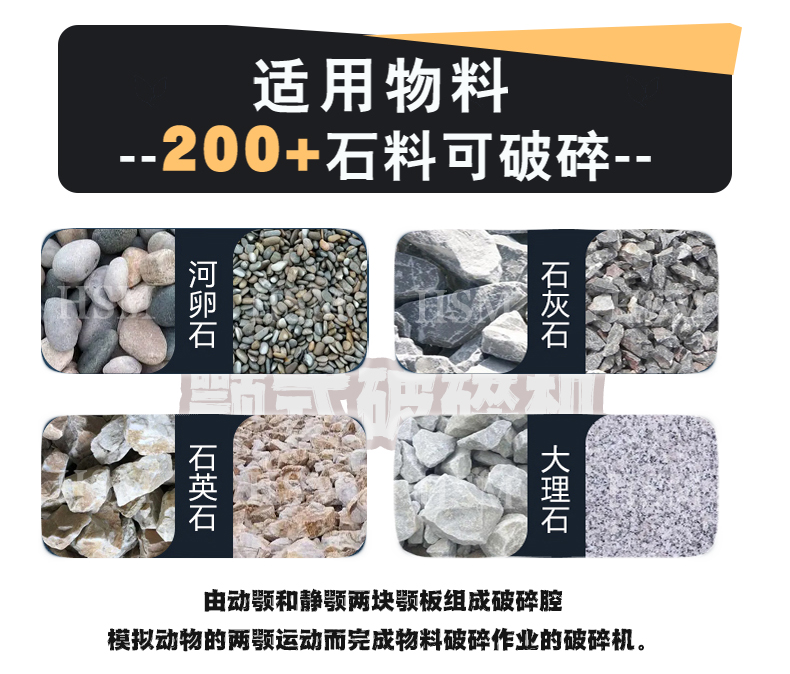 加工物料:石灰石、鐵礦石、河卵石、鵝卵石、花崗巖等